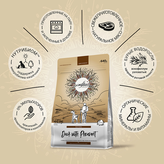 CRAFTIA NATURA — корм для собак ультрапремиум класса, созданный с любовью к природе.