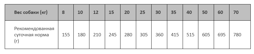 Питательная ценность: сырой белок 31,45%; сырой жир 17,7%; сырая клетчатка 1,75%; сырая зола 6,7%; кальций - 1,2%; фосфор - 0,9%; Омега-6 жирные кислоты - 2,6%; Омега-3 жирные кислоты - 0,7%; докозагексаеновая кислота (ДГК) - 0,35%; эйкозапентаеновая кислота (ЭПК) - 0,25%; глюкозамин – 1300мг/кг, хондроитина сульфат - 1000мг/кг.