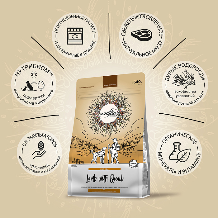 CRAFTIA NATURA — корм для собак ультрапремиум класса, созданный с любовью к природе.