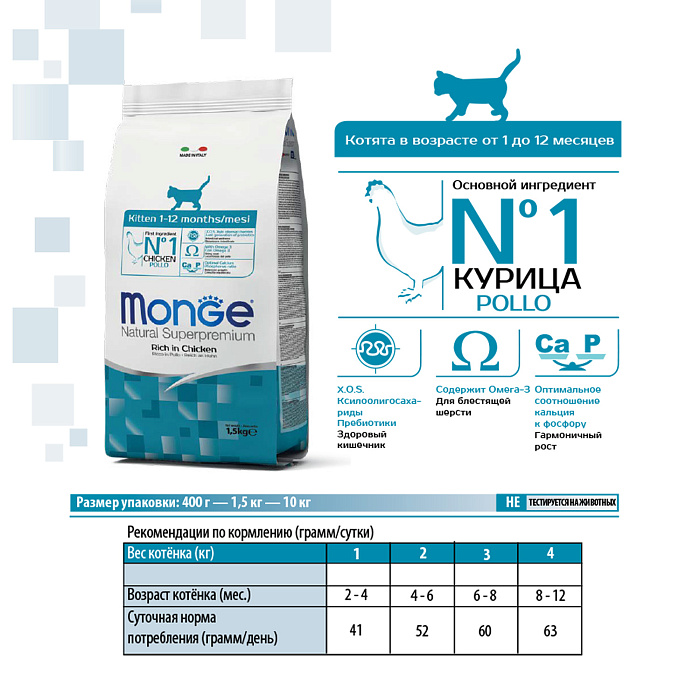 Monge (Монж) Cat Daily Line сухой корм из мяса курицы для котят 400 г.