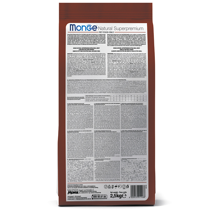 Monge (Монж) Dog Speciality Line Monoprotein Puppy & Junior Mini сухой корм из мяса ягнёнка с рисом для щенков мелких пород 2,5 кг.