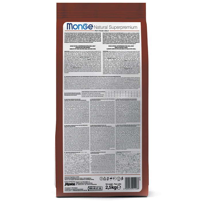 Monge (Монж) Dog Speciality Line Monoprotein Mini сухой корм из мяса ягнёнка с рисом для взрослых собак мелких пород 2,5 кг.