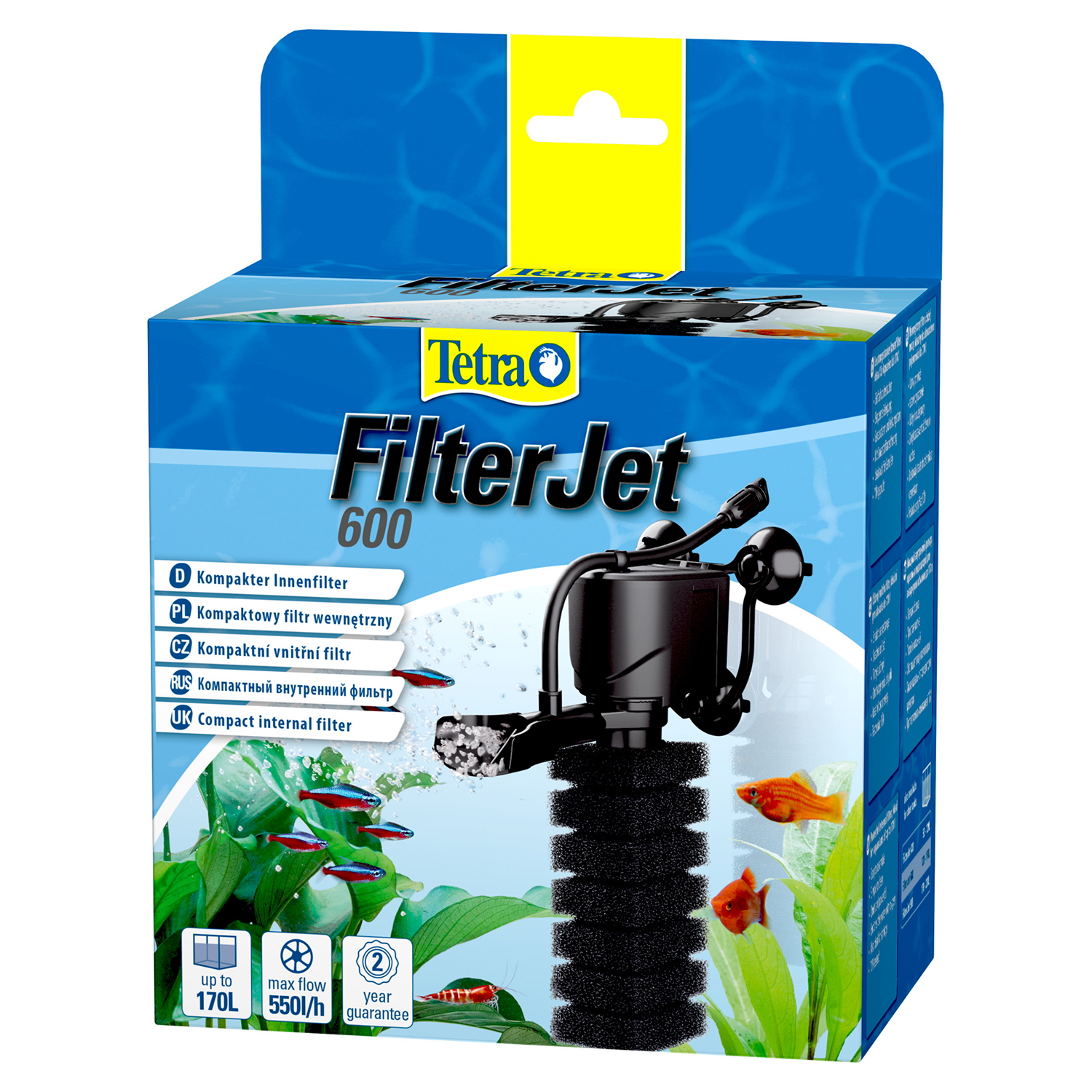 Мощный фильтр Тетра ФильтрДжет для аквариумов объемом 120 – 170 л идеально очищает воду благодаря комплексной фильтрации: механической и биологической. Таким образом, устройство устраняет как крупные, так и небольшие частицы грязи в аквариумной воде и создает биологический баланс, необходимый для здоровой среды в аквариуме. Механическая фильтрация позволяет устранить крупные загрязнения, например удалить осадок из грунта, а также взвеси, такие как водоросли и растительные остатки. Однако нитрифицирующие фильтрующие бактерии имеют еще большее значение. Эти полезные бактерии оседают на фильтрующей губке и способствуют распаду аммиака и нитрита на нитрат. Это часть биологической фильтрации и естественного процесса разложения в аквариуме. Тетра ФильтрДжет работает невероятно тихо. Он также невероятно прост в установке и готов к работе уже через несколько секунд. Регулируемое выпускное сопло обеспечивает оптимальный контроль циркуляции воды для равномерной аэрации аквариума. Еще одно преимущество внутреннего аквариумного фильтра Тетра ФильтрДжет заключается в невероятно легкой очистке фильтрующей губки, что позволяет значительно сократить время обслуживания фильтра. Для очистки фильтрующего материала не рекомендуется использовать горячую воду, в противном случае вы нанесете вред полезным фильтрующим бактериям, которые оседают на фильтре. Также для очистки фильтра запрещается использовать химические средства. Для обеспечения долгосрочной защиты популяции фильтрующих бактерий не рекомендуется одновременно очищать фильтр и осуществлять необходимые процедуры частичной замены воды.