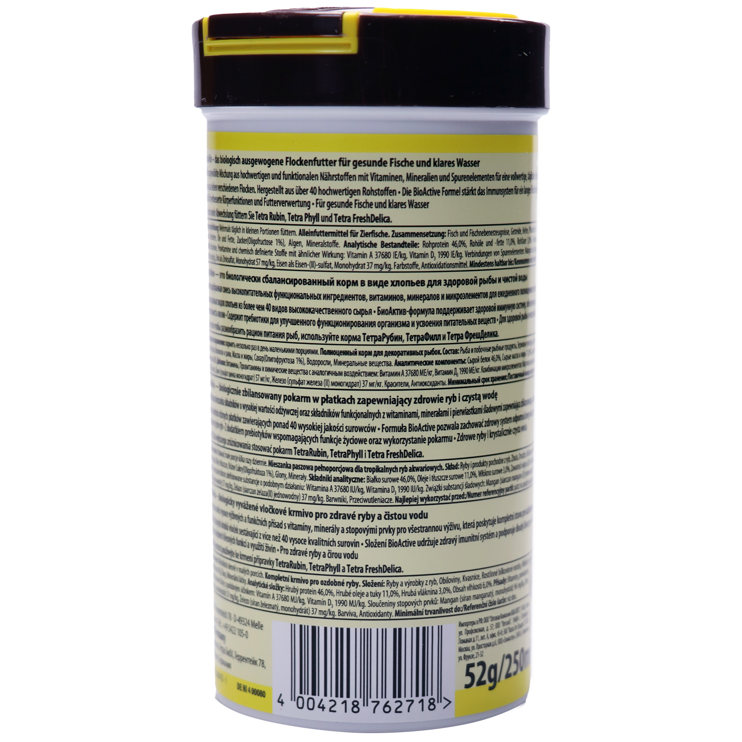 Состав: Рыба и побочные рыбные продукты (Рыбная мука), Зерновые культуры, Экстракты растительного белка, Дрожжи, Масла и жиры (Рыбий жир, Растительные), Растительные продукты, Моллюски и раки, Водоросли, Минеральные вещества.