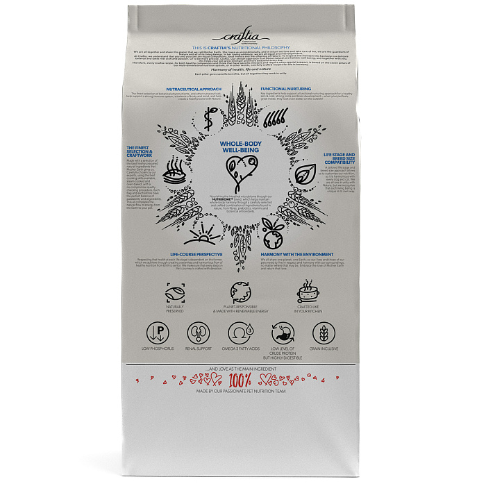 Craftia Galena Renal Care - полнорационный диетический корм для собак, разработан для поддержания функции почек при наличии хронической почечной недостаточности или в случае острой почечной недостаточности.