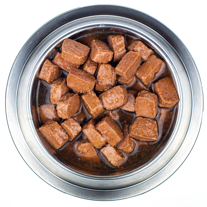 Состав: мясо и мясные субпродукты 45% (кролик не менее 5%), злаки, L-карнитин, DL-метионин, витамины и минералы, инулин.