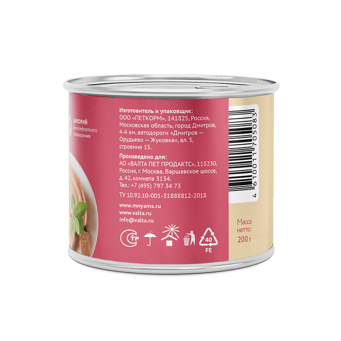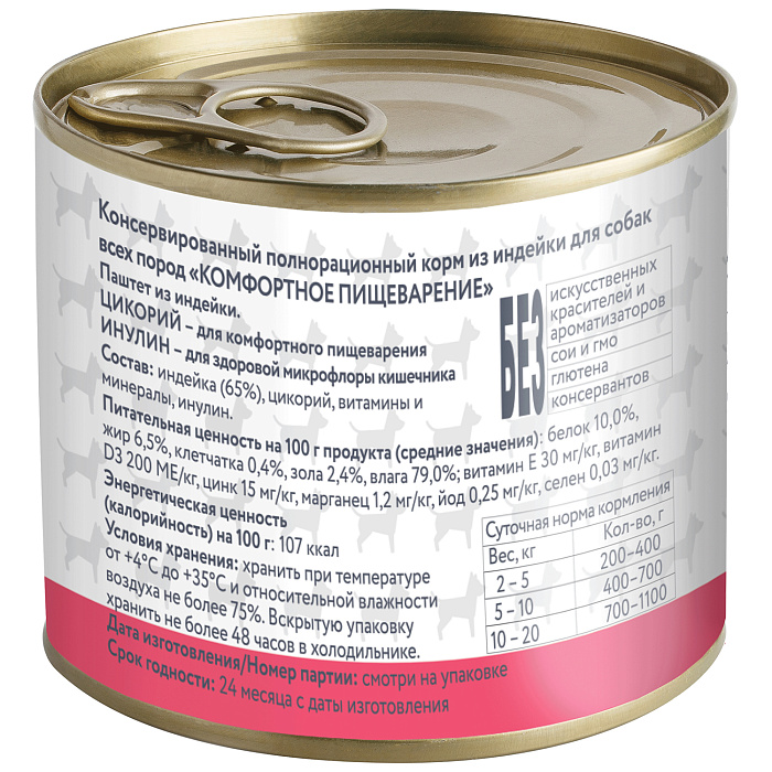 Состав: индейка (65%), цикорий, витамины и минералы, инулин.