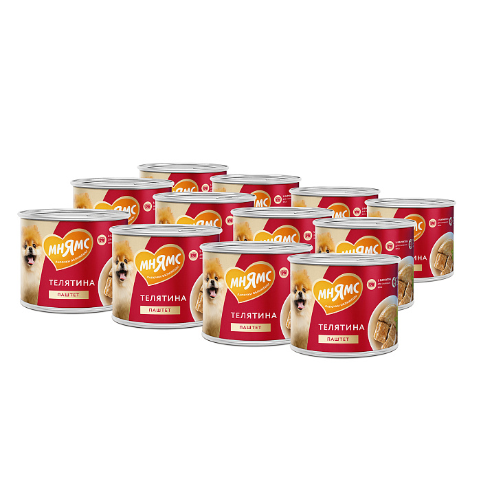 В современном мире собаки тоже должны поддерживать свою физическую форму и оптимальный баланс мышечной и жировой ткани. Именно поэтому паштет из телятины не только сытный и вкусный, но и содержит аминокислоты L-carnitine и DL-метионин для активного обмена веществ и снижения веса. Заботьтесь о своей собаке правильно вместе с «Мнямс».
