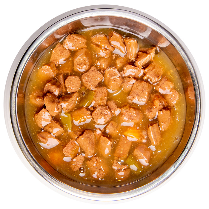 Идеально подходит в качестве повседневного рациона для домашних питомцев. Содержит альтернативные источники беззлаковых углеводов, таких как, зеленая фасоль и морковь.