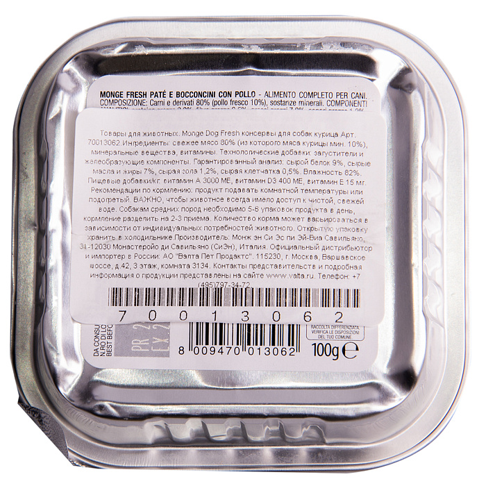 Monge (Монж) Dog Fresh полнорационный влажный корм с мясом курицы для взрослых собак всех пород 100 г.