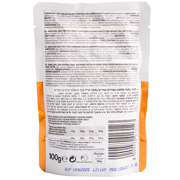 Monge (Монж) Dog Grill полнорационный беззерновой влажный корм с лососем для взрослых собак всех пород 100 г.