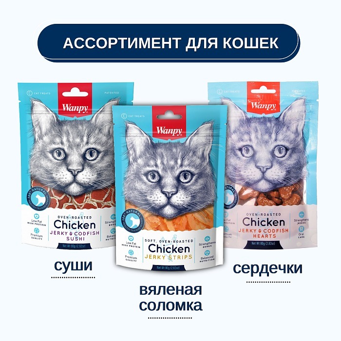 Wanpy Cat лакомство куриная соломка мягкая 80 г.