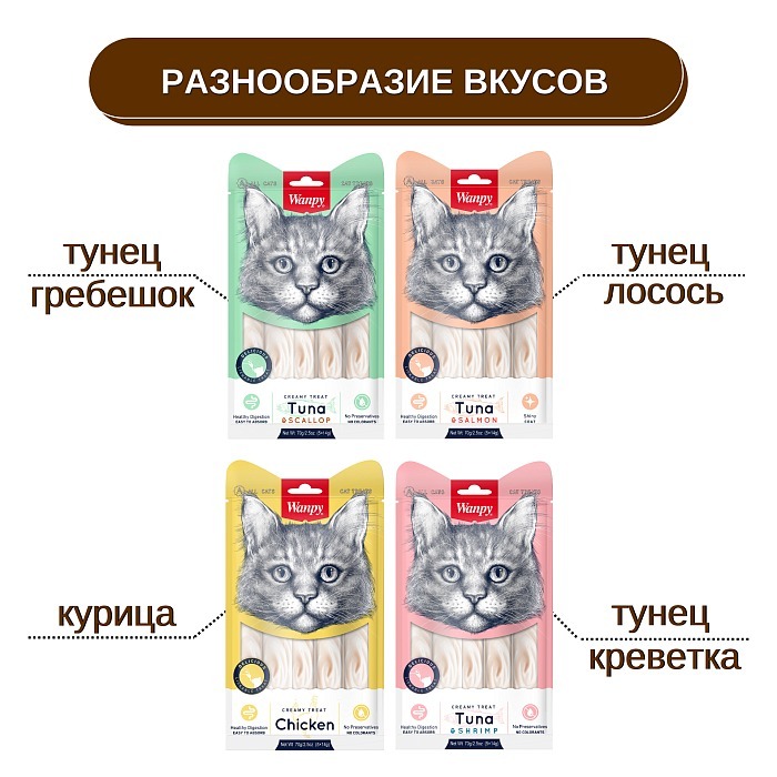 Лакомство Wanpy - это повседневное угощение, которым можно наградить вашего питомца за послушание или просто порадовать его вкусным сюрпризом.